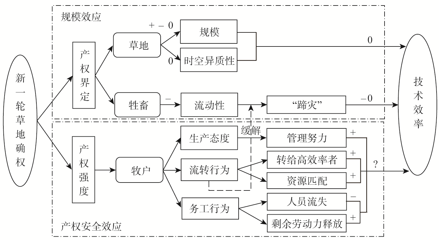 探讨草地确权对牧户技术效率的影响及机制,有助于利用产权制度安排遏制草地退化,改善牧户生计。基于在内蒙古乌拉特中旗调研的确权前后三期面板数据,采用随机前沿模型分析新一轮草地确权对牧户技术效率的影响,采用面板二值选择模型和双向固定效应模型探讨影响机制。研究表明:新一轮草地确权使牧户的技术效率提高了0.367,就2020年样本牧户而言,确权牧户的效率值比未确权牧户高6.4%;影响机制主要体现为直接激励效应和草地流转效应,迁移效应不显著。换言之,确权可通过激励牧户采取更积极的态度利用和流转草地来提高技术效率,但并未通过促进牧户成员外出务工而显著提升其技术效率。研究结论可为其他牧区推进新一轮草地确权提供参考。