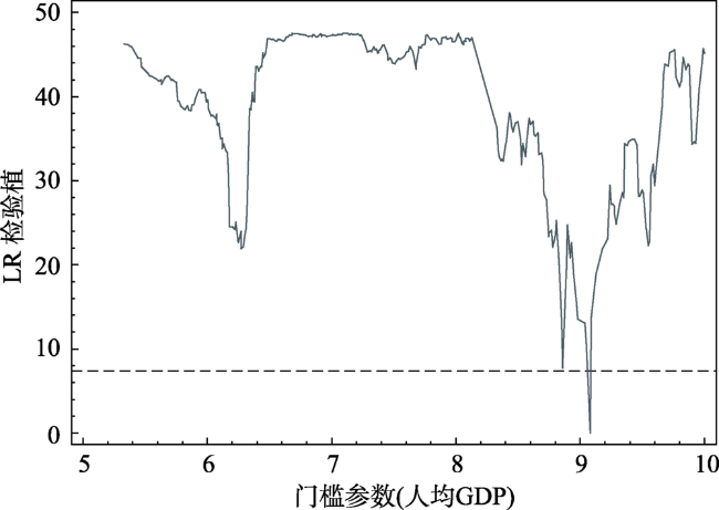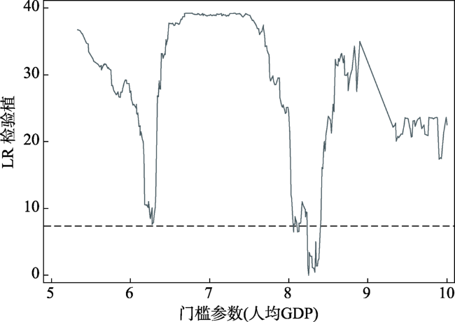 Table 3 Threshold value and confidence interval表3 门槛估计值和置信区间 |