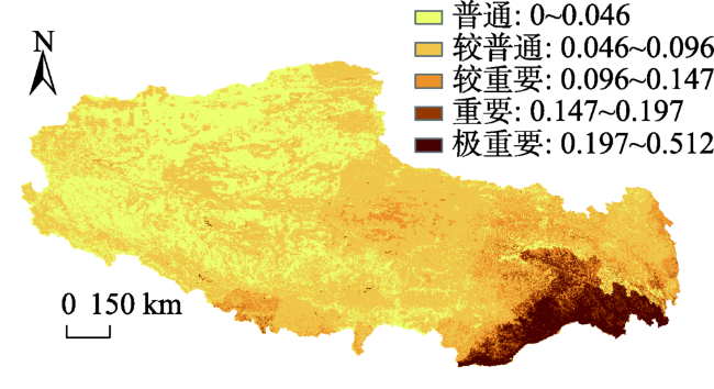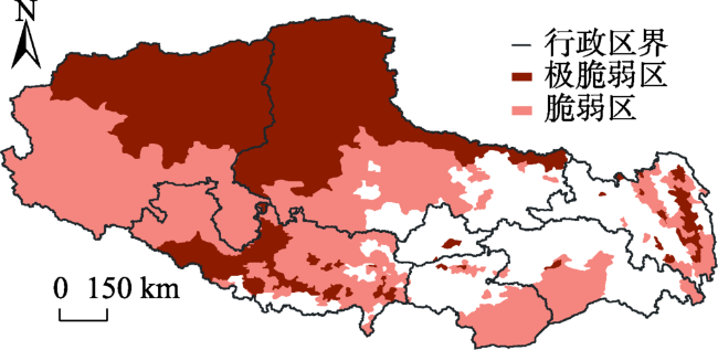 Fig. 5 Spatial distribution of ecological vulnerability in Tibet图5 西藏地区生态脆弱性分布 |