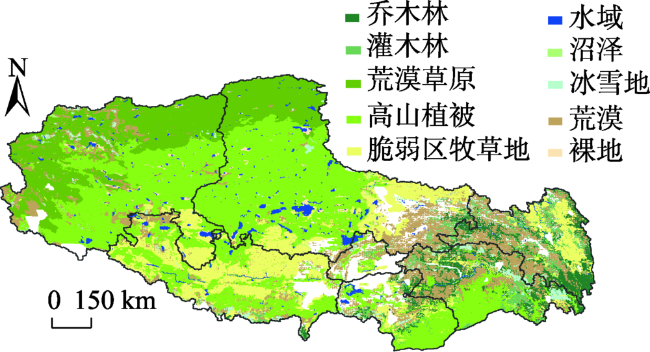 Fig. 2 Ecological spatial scope connecting with existing land classification system in Tibet图2 与现有地类体系相衔接的生态空间范围 |