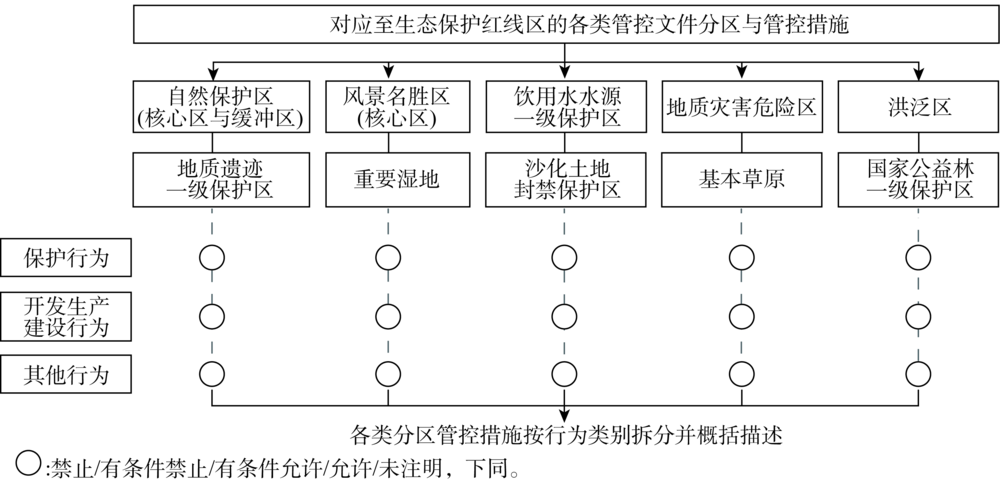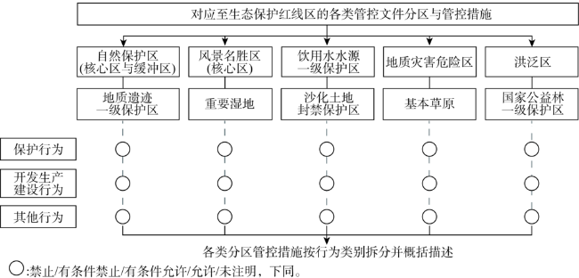 Fig. 2 The matrix of spatial regulation districts-human behaviors (the case of ecological protection district)图2 “管控分区—人类行为”矩阵(以生态保护红线区为例) |