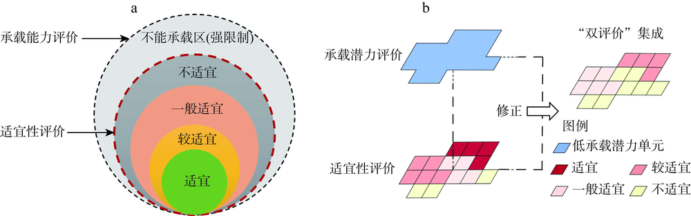 Fig. 2 Logical relationship between carrying capacity and suitability evaluation图2 承载力与适宜性评价的逻辑关系 |