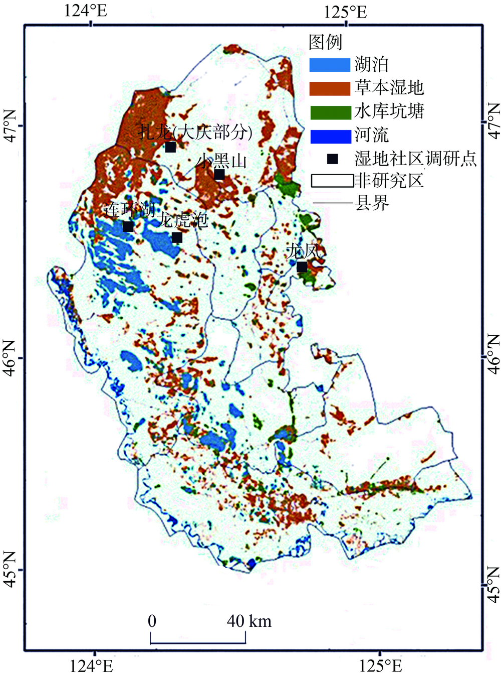 刘畅, 王继富. 5个时期黑龙江省天然湿地动态及其影响因素研究. 湿地科学, 2017,15(1):80-84.