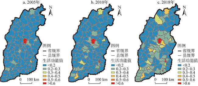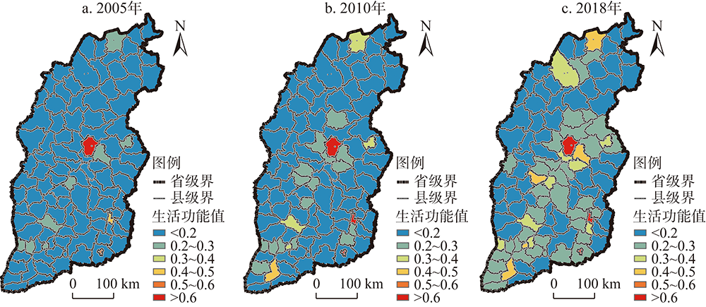 表4 2005—2018年山西省生活功能值统计Table 4 Statistics on the value of living function in Shanxi province from 2005 to 2018 |