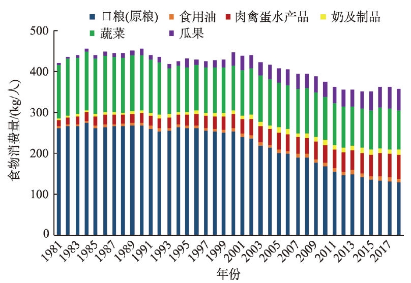 封志明, 史登峰. 近20年来中国食物消费变化与膳食营养状况评价. 资源科学, 2006,28(1):2-8.