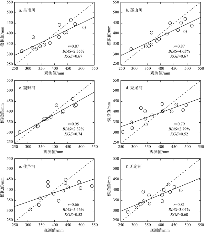 图2 PML蒸散发产品在黄河中游6个典型流域的适用性验证Fig. 2 Validation of the applicability of PML evapotranspiration products in six typical watersheds of the Middle Yellow River |