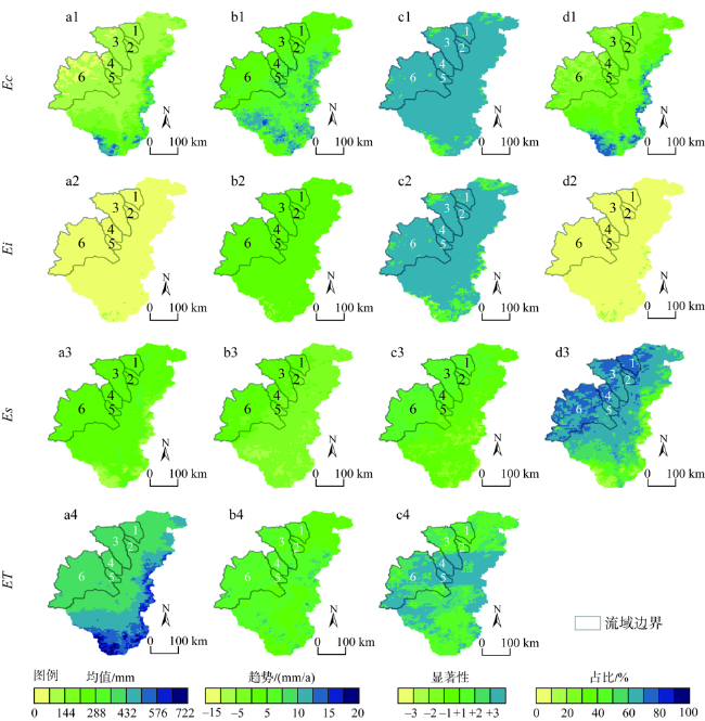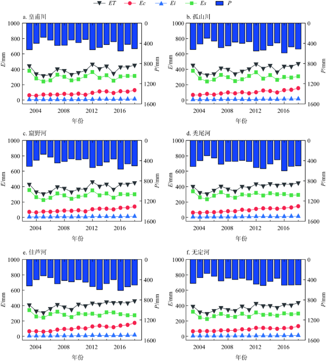 植被恢复背景下黄河中游及6个典型流域蒸散发及其组分变化格局