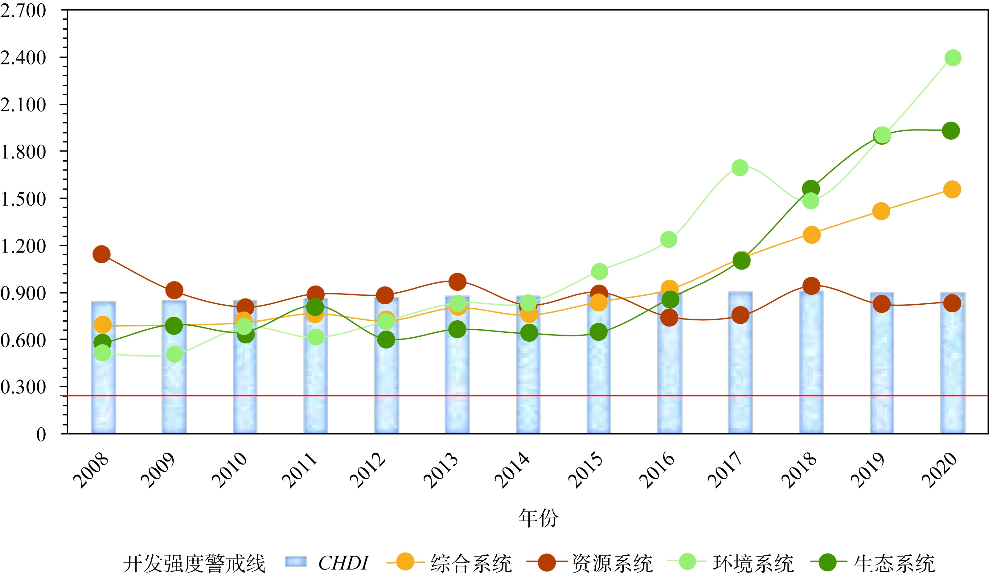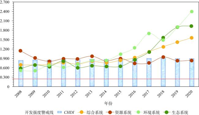 表3 2008—2020年北京市区域承载能力主要障碍因子Table 3 Major obstacles of regional carrying capacity in Beijing from 2008 to 2020 |