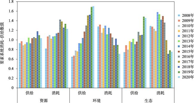 表2 要素系统供需定量评估指标Table 2 Metrics of supply index and consumption index of factor systems |