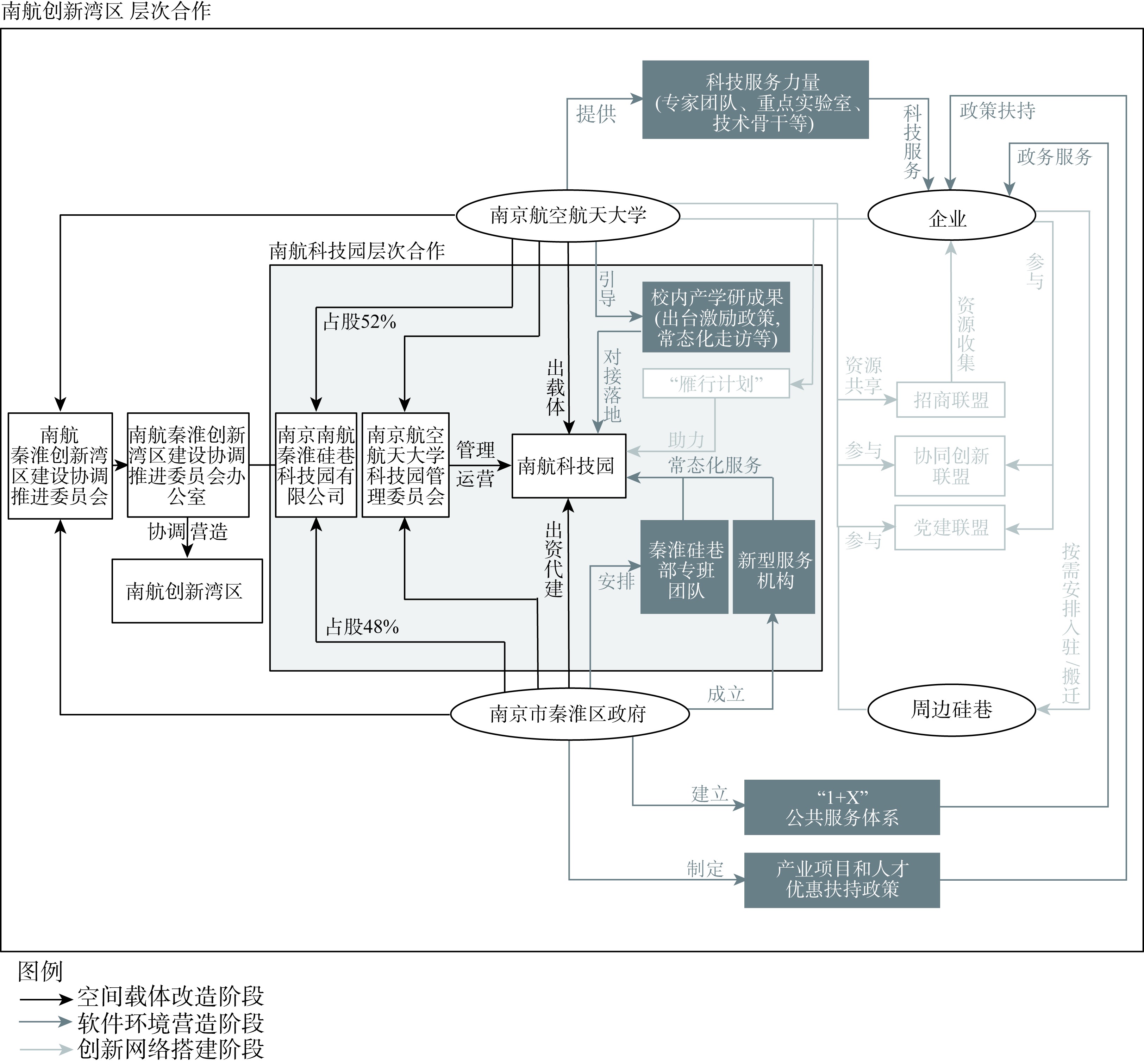 表4 环南大硅巷与南航创新湾区转型更新过程与协同维度比较Table 4 Comparison of development phases and coordination measures between Nanjing University's Silicon Valley and Nanjing University of Aeronautics and Astronautics Innovation Bay Area |