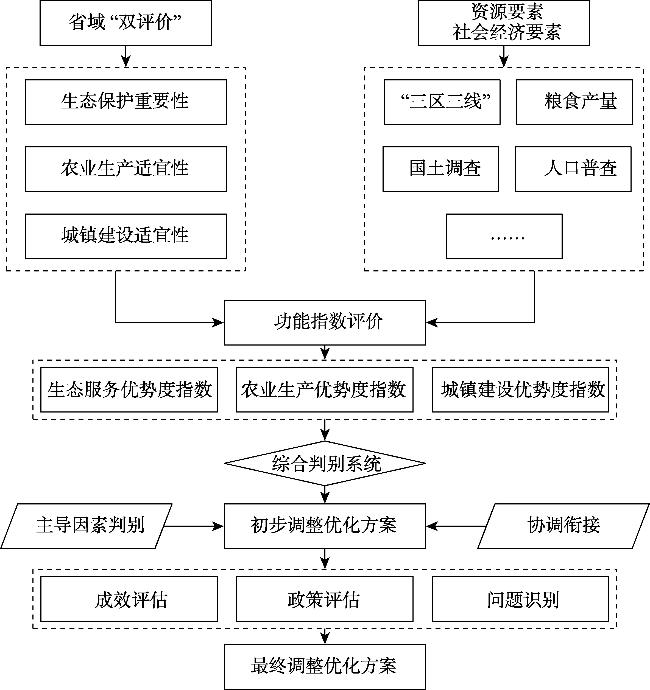 主体功能区是中国特有的面向国土空间开发保护的重要制度设计,但在当前区域协同、高质量发展的要求下,支撑国土空间规划体系下新发展格局稍显不足。为促进主体功能区规划全面融入国土空间规划体系,适应新发展理念和新发展战略的要求,深入分析了主体功能区在功能、政策和空间上的分区实质,解析“双评价”和主体功能区之间的关系;提出以省域“双评价”为基础,通过面向生态服务、农业生产、城镇发展三类主体功能构建功能指数评价指标体系与综合判别系统,并耦合主导因素判别修正细化调整方案,形成一套结合资源要素与社会经济要素的主体功能区调整优化方法;进一步以广东省为例开展实证研究,以期为广东省主体功能区调整优化与分区细化提供参考。