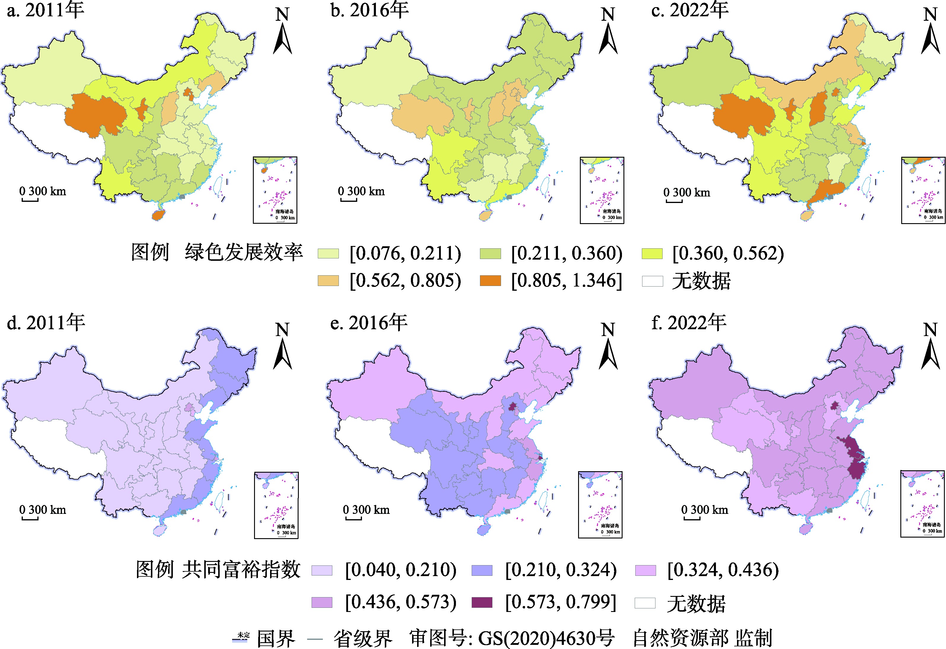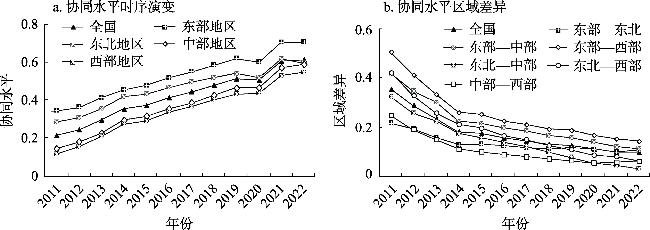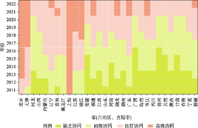 推进绿色发展与共同富裕协同共赢是建设中国式现代化的客观要求。在厘清绿色发展与共同富裕协同演化机理基础上,采用哈肯模型对两者协同关系定量测度并刻画时空格局特征,最后借助随机森林模型识别协同演化的驱动因素。结果表明:(1)2011—2022年中国绿色发展效率与共同富裕指数波动增长,绿色发展水平逐渐演变为西北—东南递减的梯度分异格局,北京和长三角地区共同富裕水平处于领先地位。(2)研究期内二者协同水平显著攀升,空间层面形成“东强西弱”格局,区域间差异持续缩小,各地区协同演化类型阶段性向好发展。(3)经济基础、产业结构、环境规制、金融发展与数字经济能够较稳定地促进两者良性互动,政府调控的驱动作用先升后降。研究成果可为国家协同推进经济社会全面绿色转型和共同富裕提供参考借鉴。