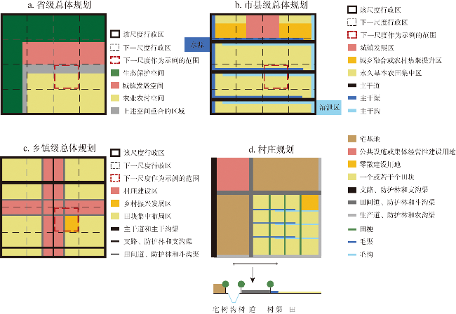 图6 基于全域土地综合整治的多尺度分区划定和要素协调逻辑Fig. 6 Multi-scale regionalization delimitation and element coordination logic based on comprehensive land consolidation |