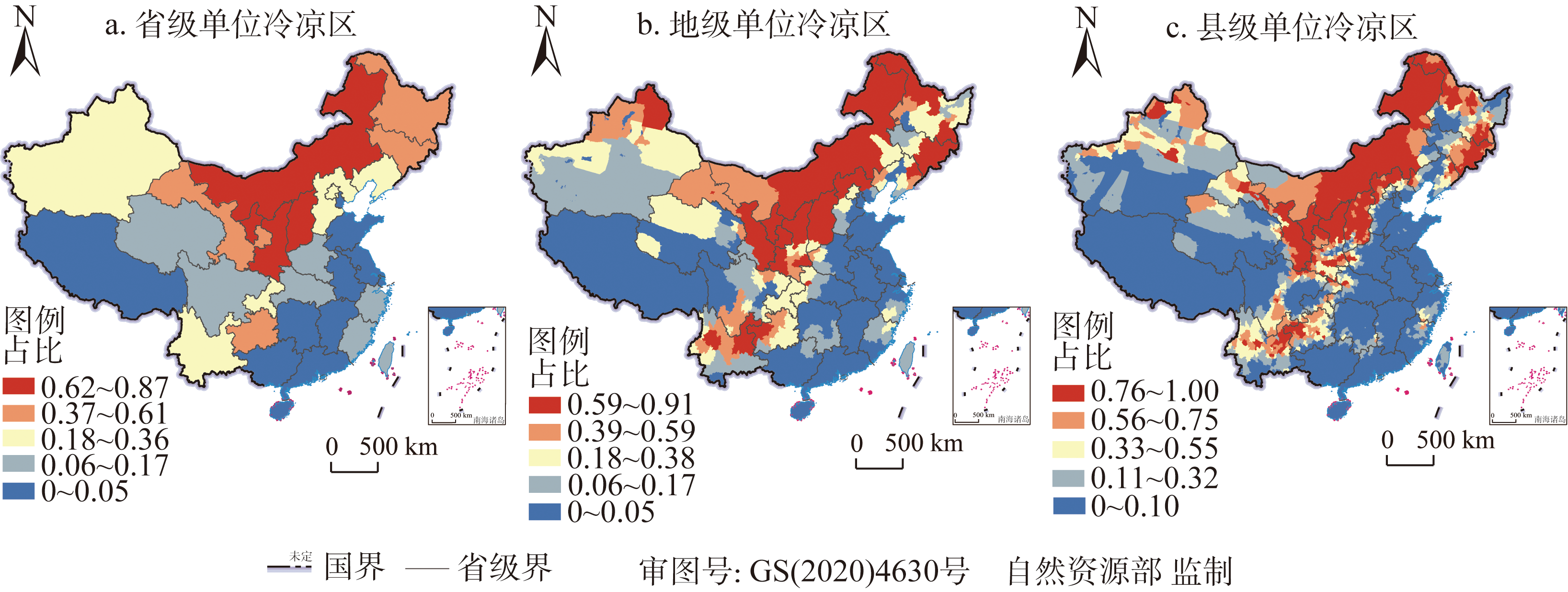 中国省、市、县内冷凉区域占比