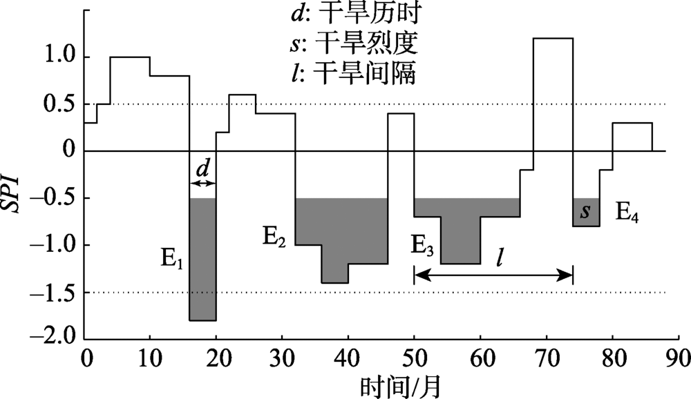 Fig. 2 Sketch showing definition of drought events图2 干旱事件的定义 |