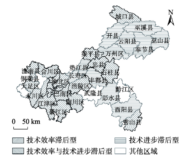Fig. 7 Types and distribution of agricultural production efficiency in Chongqing during 2000-2016图7 2000-2016年重庆市农业生产效率问题类型及分布 |