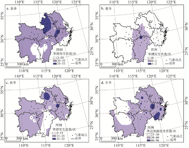 ④ 寒潮低发区 | ≤50 | 湖南、湖北等站点 |