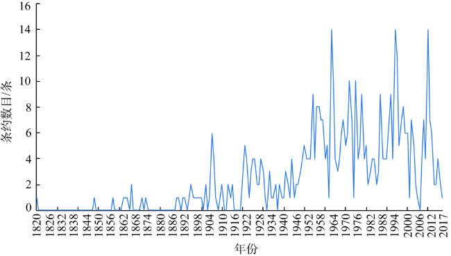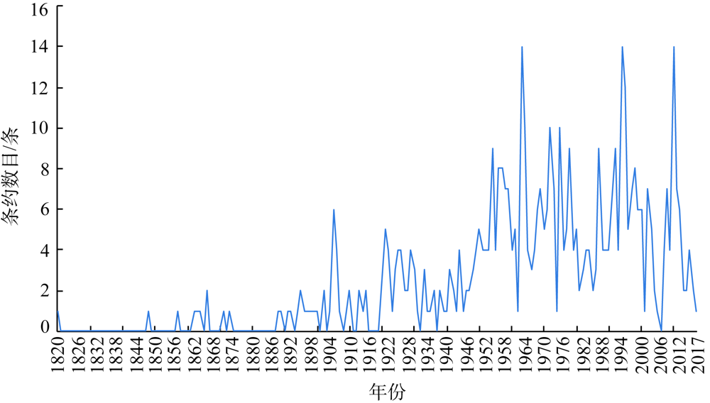 表1 1820—2017年全球跨界水合作统计Table 1 Statistics on international transboundary water cooperation from 1820 to 2017 |