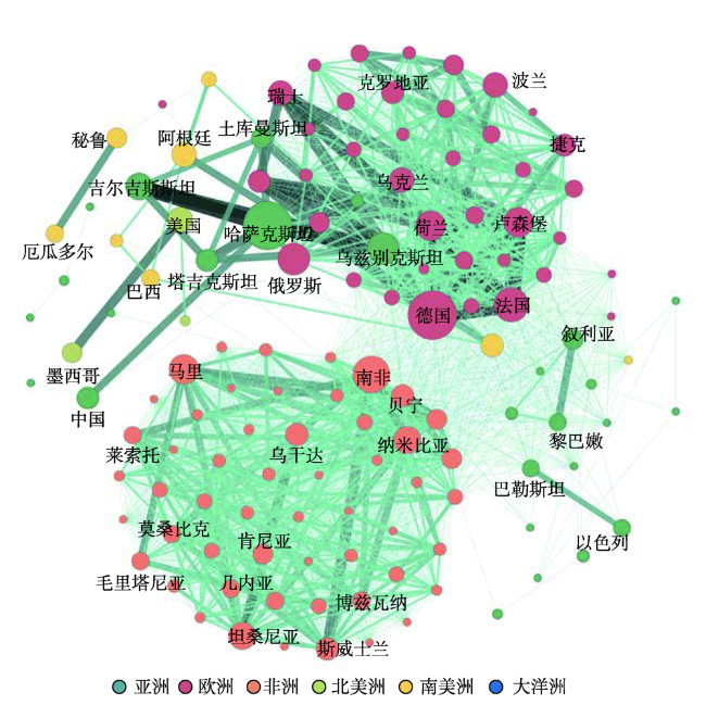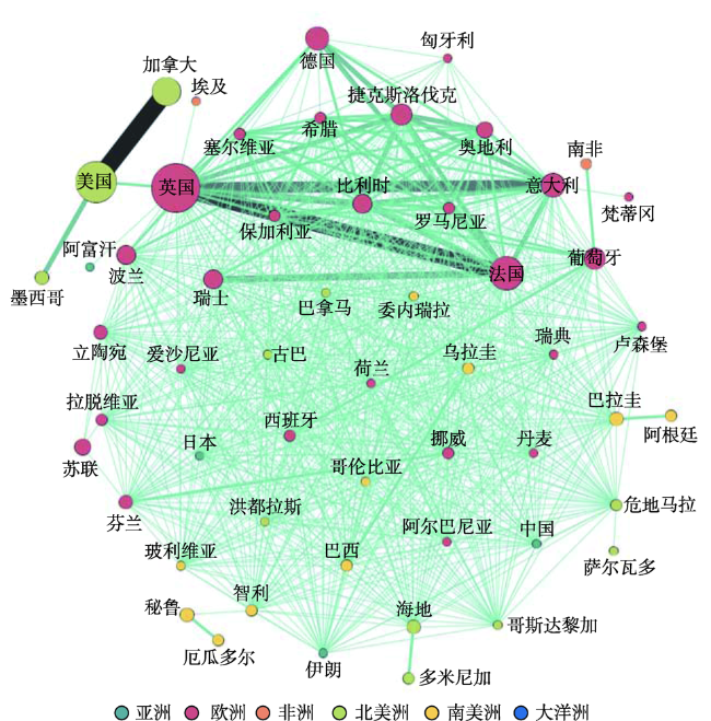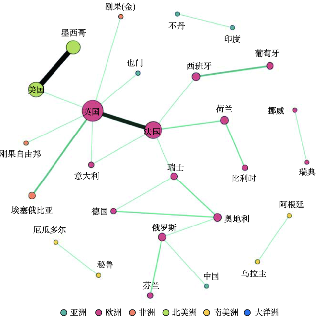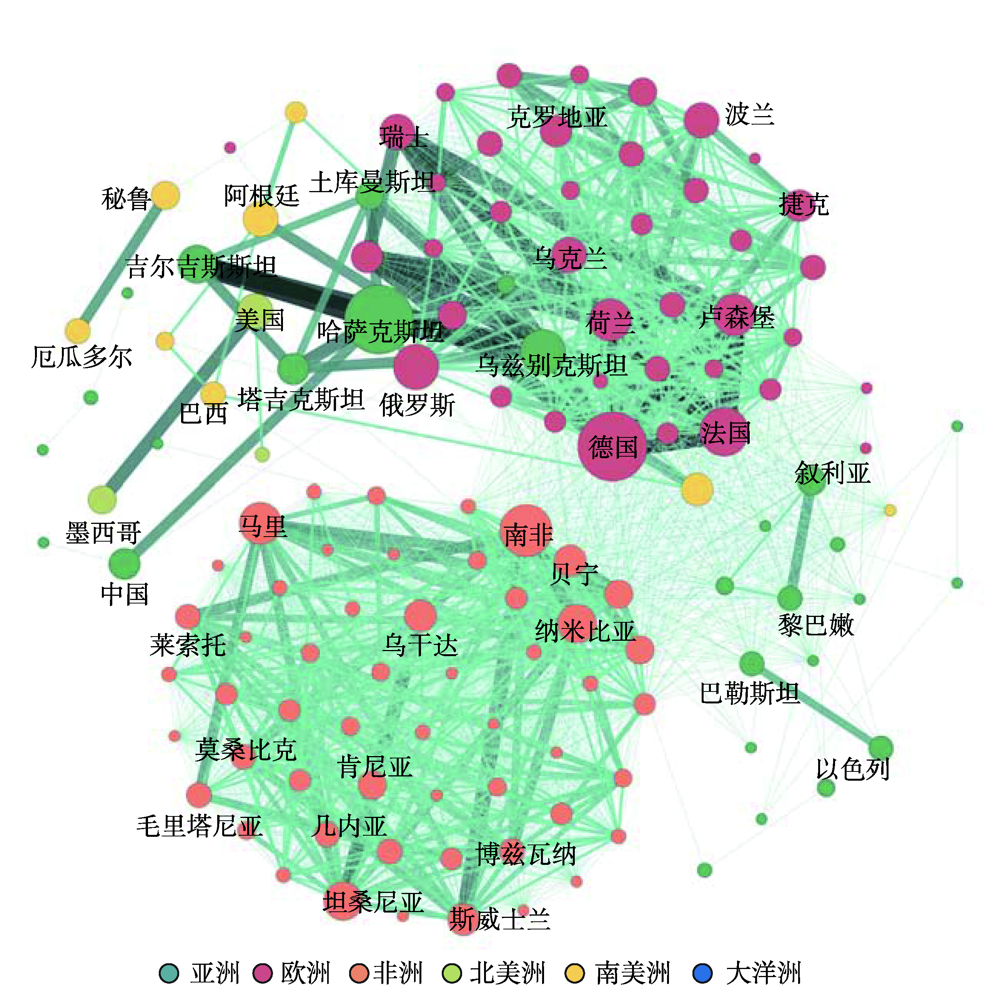 表3 1820—2017年全球跨界水合作网络节点特征统计Table 3 Statistics on the characteristics of nodes about international transboundary water networks from 1820 to 2017 |