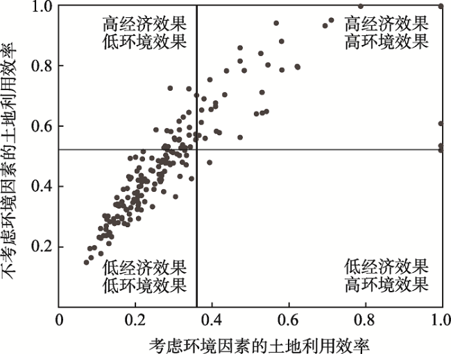 土地利用效率 | 考虑环境约束 | 不考虑环境约束 | ||