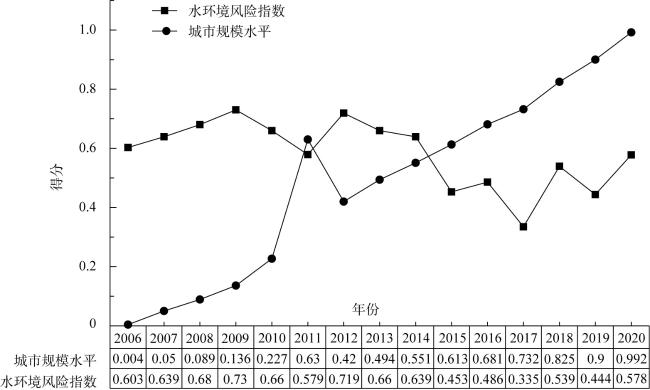 表3 2006—2020年合肥城市规模与水环境风险脱钩指数Table 3 Decoupling index of city size and water environment risk in Hefei from 2006 to 2020 |