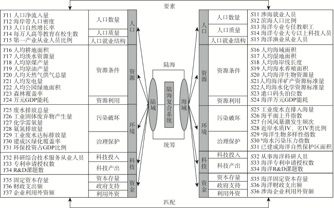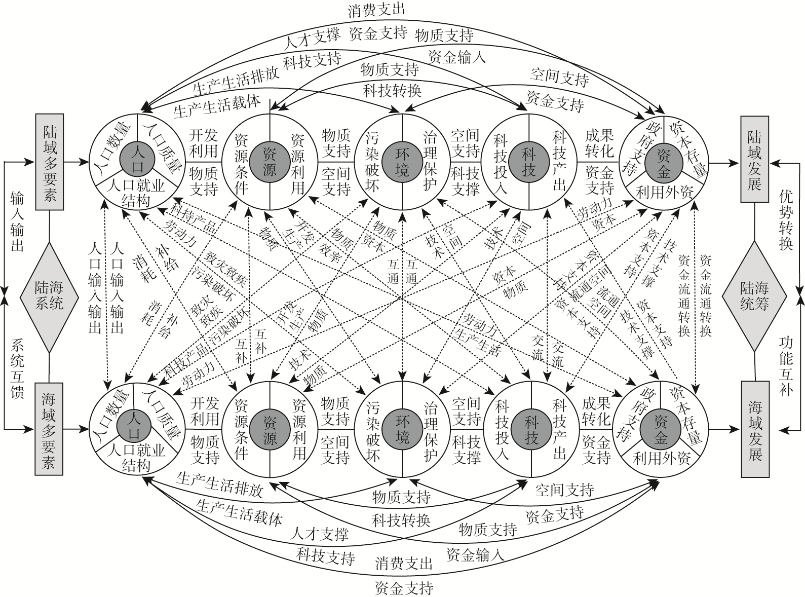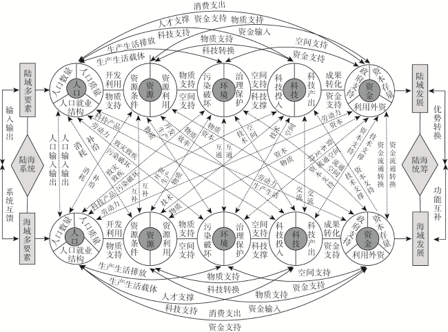 河北 | 陆域资金>陆域环境>陆域科技>涉海人口>海域科技>海域资金>陆域人口>海域环境 | 陆海要素交互驱动,陆域驱动要素主导 | |