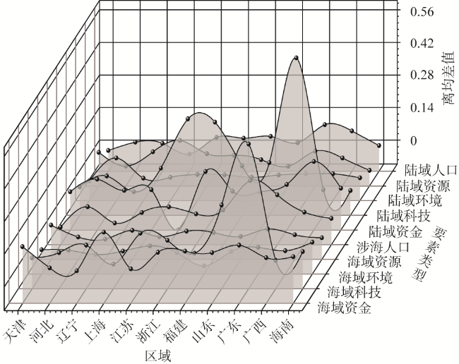海南 | 海域资金>陆域资金>海域科技>海域环境>涉海人口>陆域人口>陆域科技 | 陆海要素交互驱动,海域要素驱动主导 | |