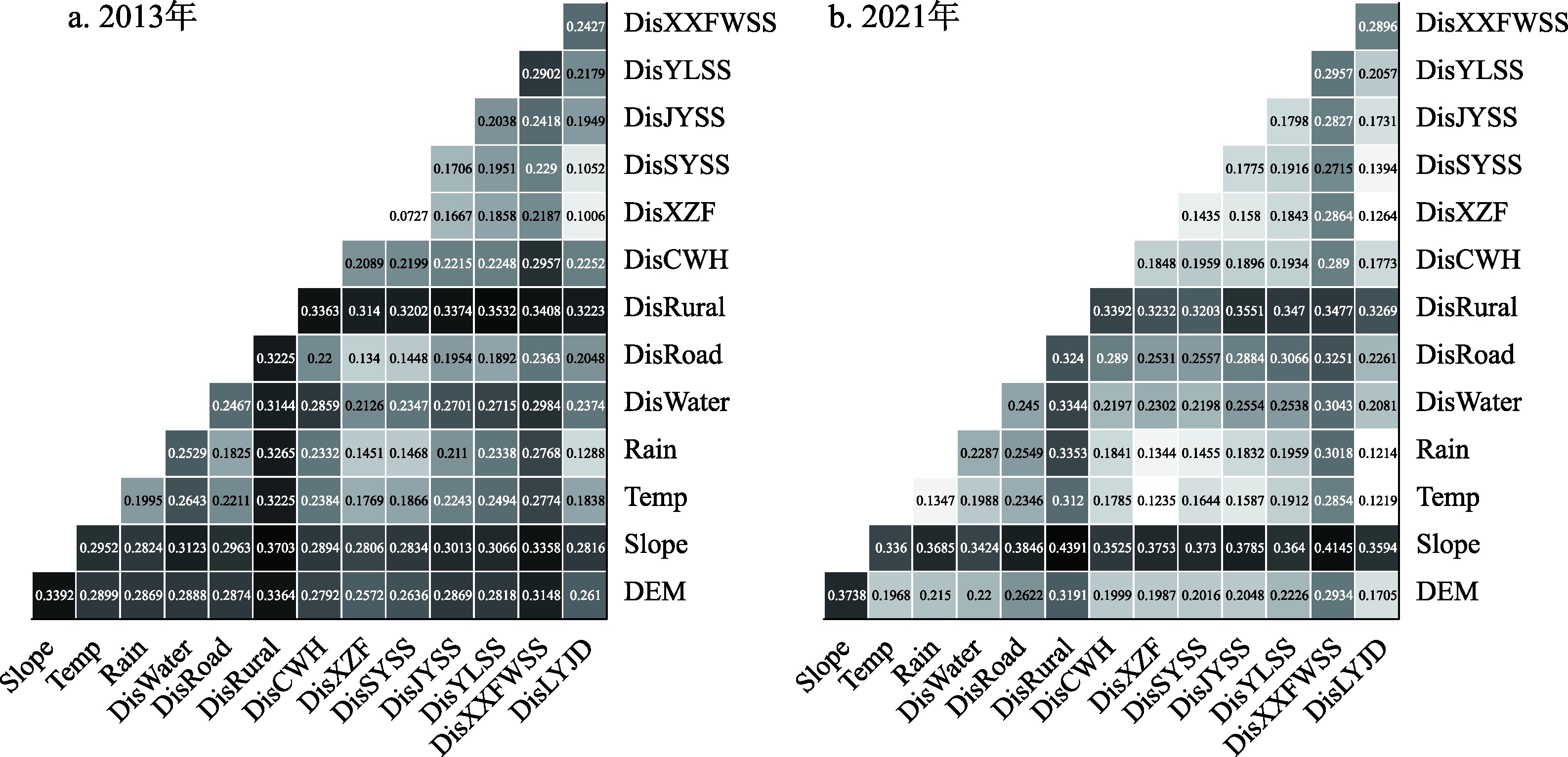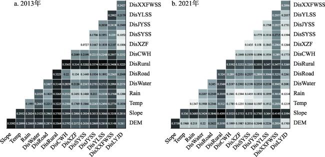 表4 2021年中源乡耕地各功能Spearman秩相关系数Table 4 Spearman's rank correlation coefficient for each function of cultivated land in Zhongyuan (2021) |
