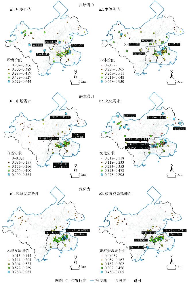 文旅需求潜力 | 市场需求 | 空间需求 | 基于步行可达距离与服务区网络分析计算点位可服务范围面积 |