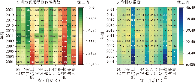 表5 粮食主产区耕地利用绿色转型与耕地碳排放强度脱钩系数Table 5 Decoupling coefficient of green transformation of arable land use and arable land carbon emission intensity in major grain-producing areas |